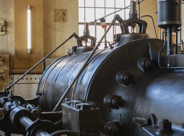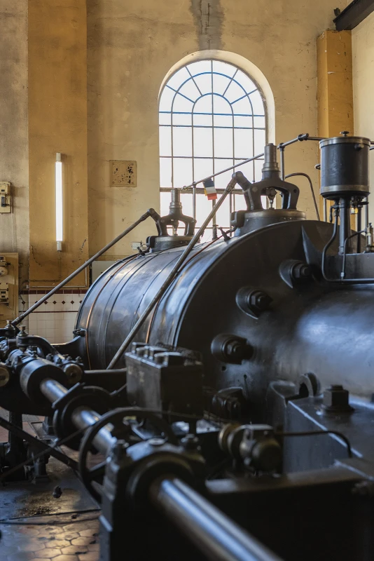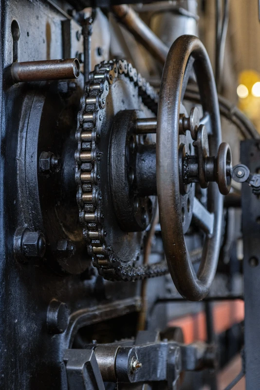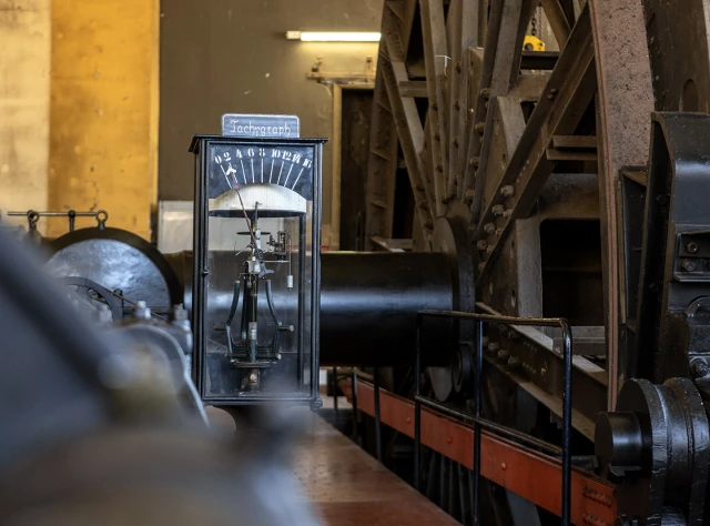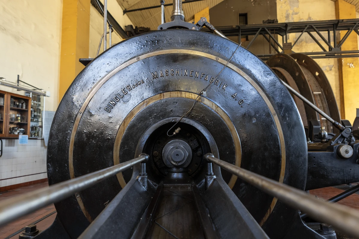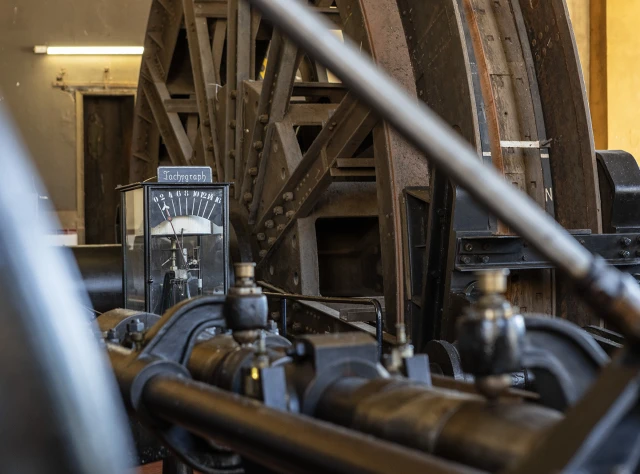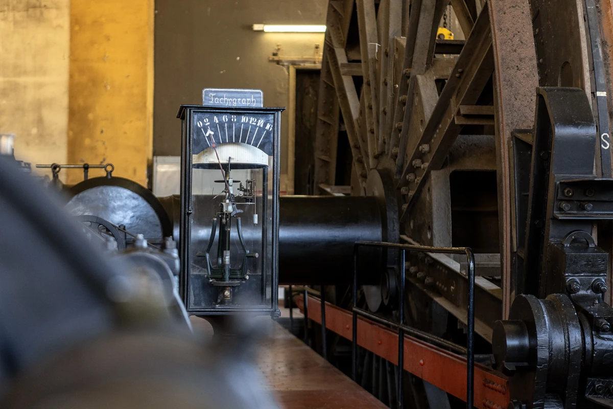 Der Gustavschacht II war ein Doppeltrum-Schacht, ausgestattet mit zwei unabhängigen Förderanlagen. Deshalb besitzt auch das Maschinenhaus eine Doppelbauweise. Während die Südmaschine leider verschrottet wurde, ist die Nordmaschine in außergewöhnlich gutem Zustand erhalten.